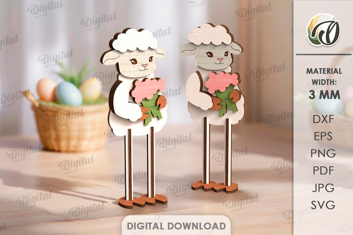 3D Easter Stand Characters Laser Cut. Easter Lambs SVG