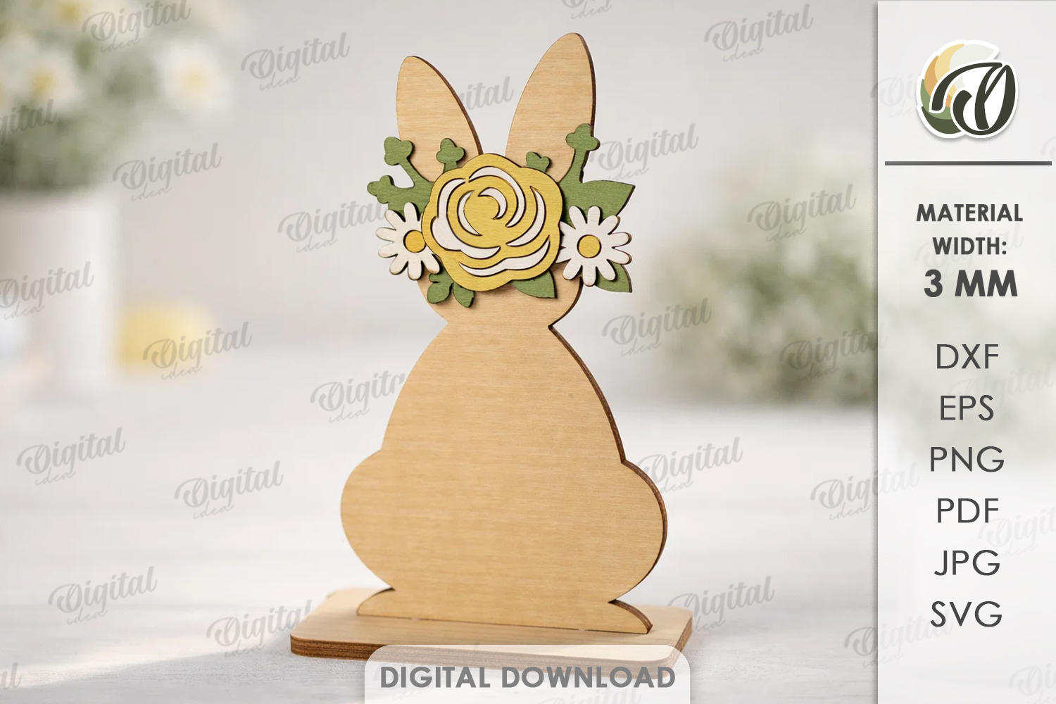 Flowers Easter Bunny Svg Floral Svg Easter Decor Tabletop 3d Laser Cut Easter Laser Spring Laser Stand Laser Shelf Sitters