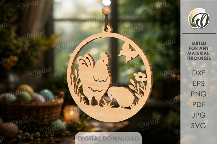 Hanging Chicken Svg Easter Decor Home Decor Wall Decor Floral Sign Round Sign Easter Ornaments 3d Laser Cut Easter Laser
