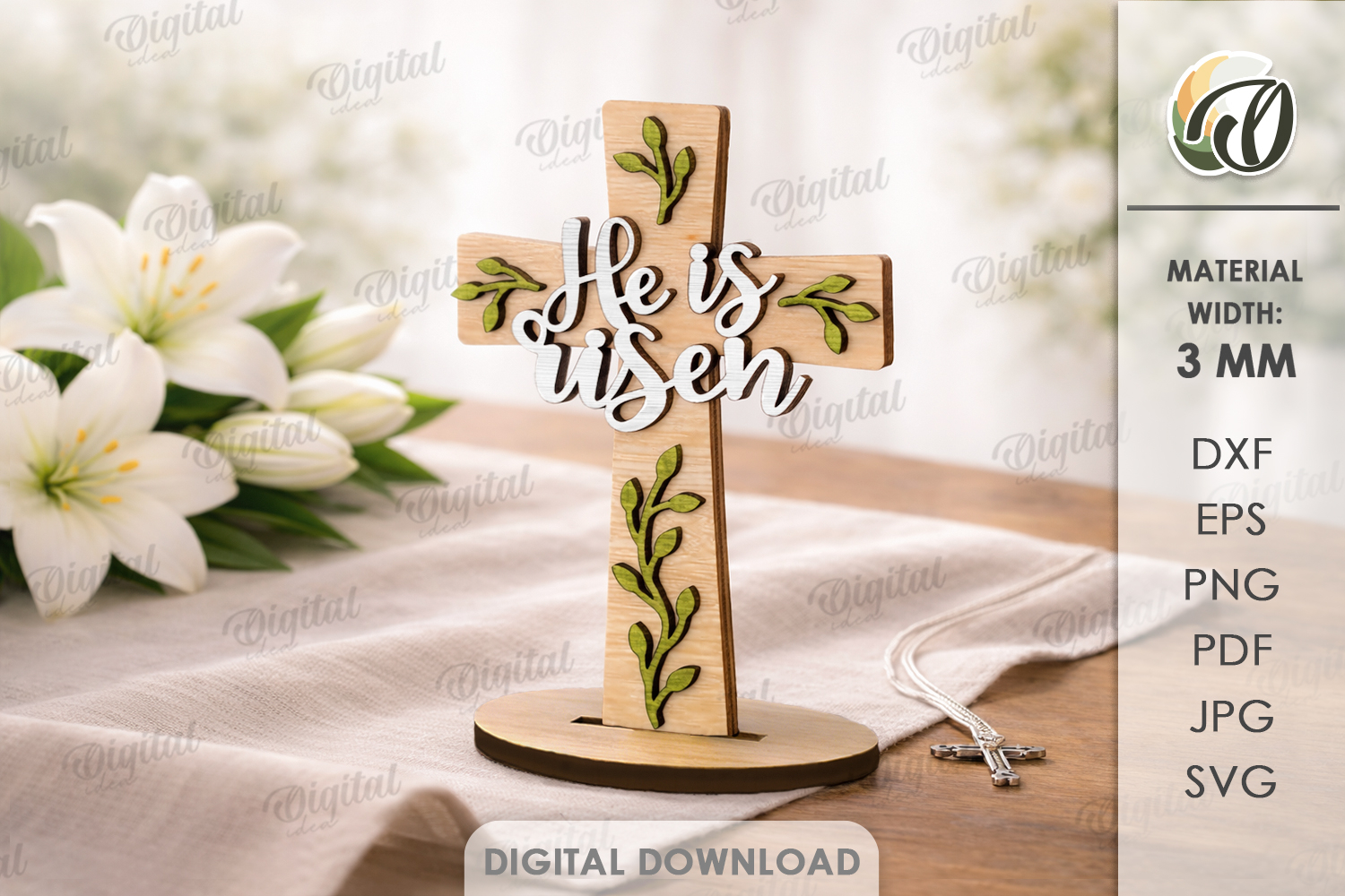 Religious Svg Easter Decor Easter Cross Religious Quotes 3d Laser Cut 3d Cross Easter Laser Stand Laser Christian Laser Shelf Sitters