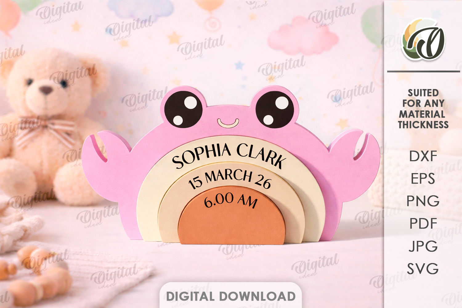 Personalized Newborn Birth Announcement Nursery Decor Crab Svg Baby Sign Baby Birth Stats Svg 3d Laser Cut Baby Laser Stand Laser