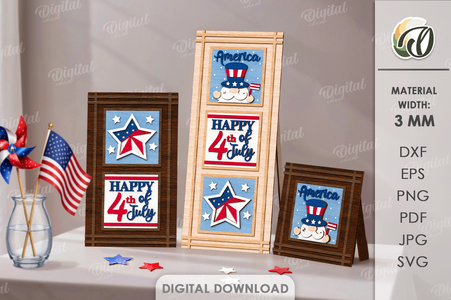 Interchangeable Sign Laser cut. Stand Decor. 4th Of July SVG
