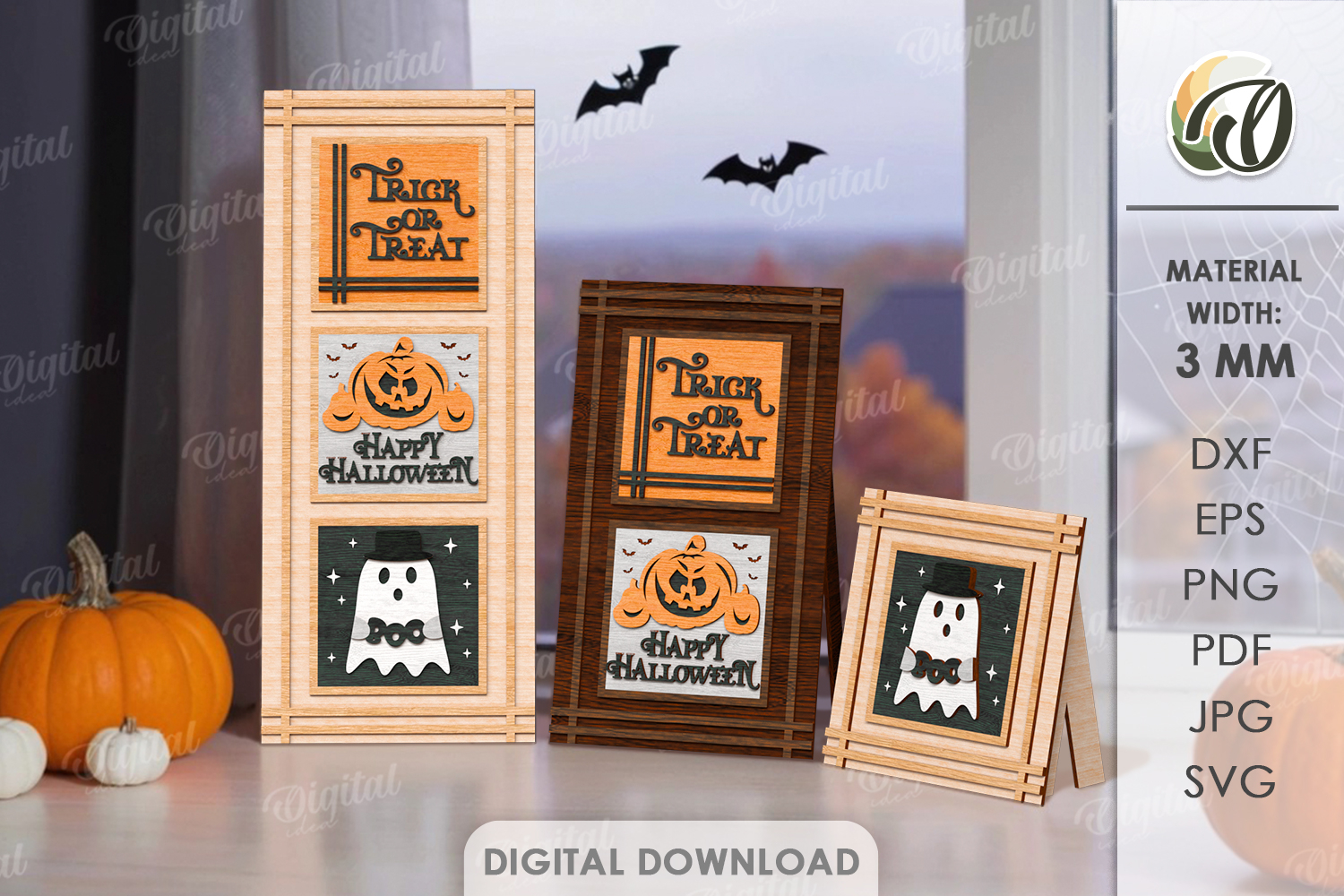 Ghost Trick Or Treat Svg Home Decor Jack O Lantern Face Svg Display Stand Interchangeable Sign Interchangeable 3d Laser Cut Halloween Laser Stand Laser