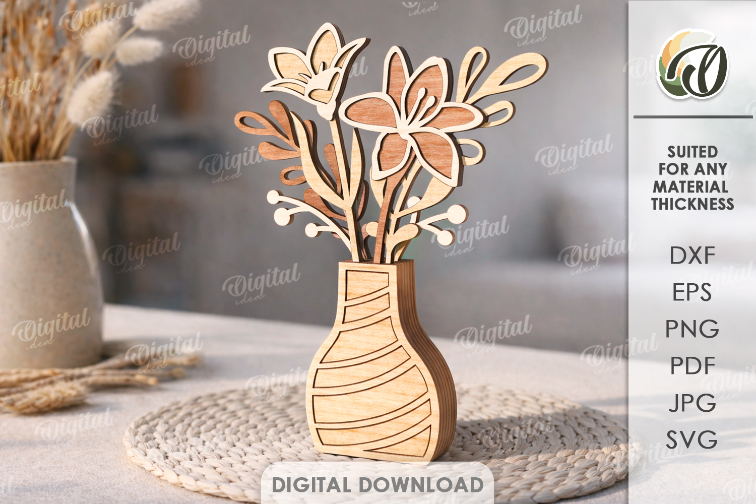 Similar Design Products to 3D Flowers With A Vase Laser Cut. Stand Decor SVG