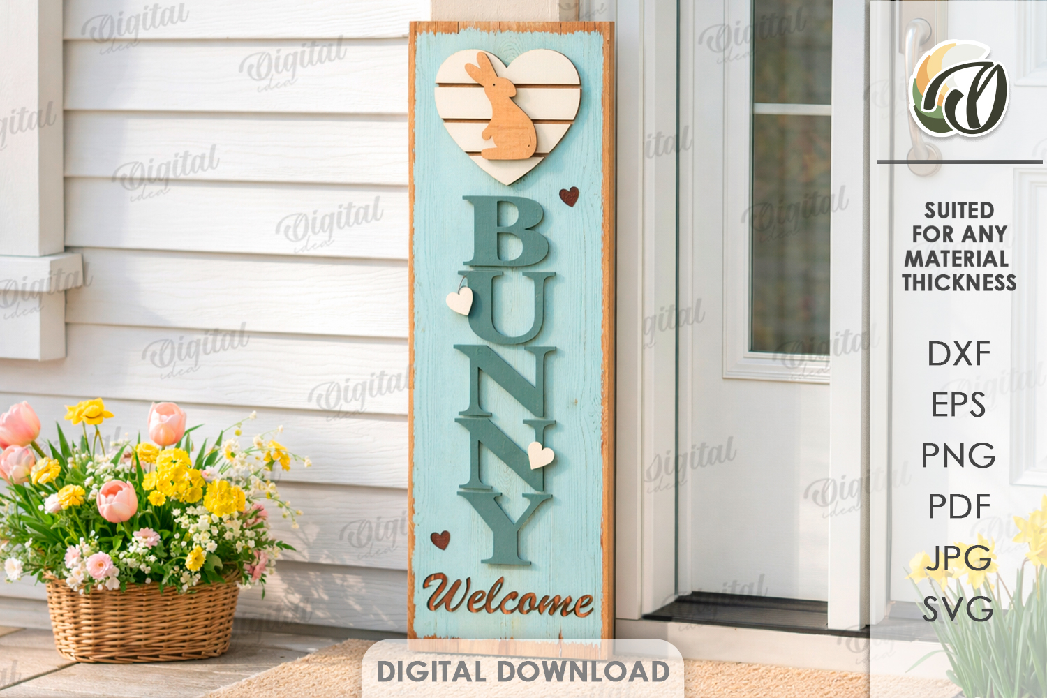 Easter Bunny Svg Rustic Svg Door Sign Easter Quotes Vertical Sign Welcome Porch Sign Svg 3d Laser Cut Heart Laser Easter Laser Spring Laser