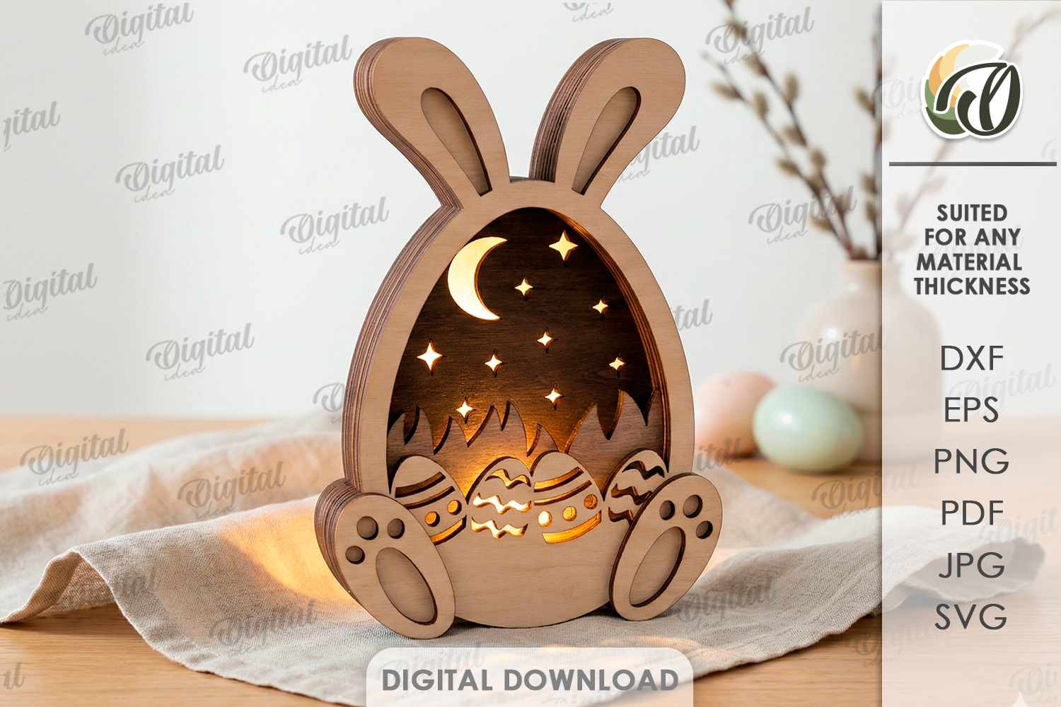 Easter Bunny Svg Easter Egg Svg Home Decor Led Lamp Lightbox 3d Laser Cut Easter Laser Night Light Svg Stand Laser Laset Cut Lamp