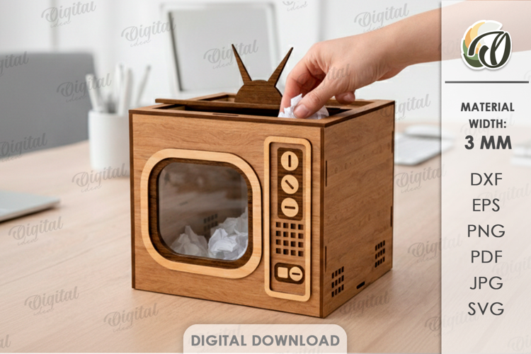 Television Wooden Box Rustic Svg Home Decor Tabletop Trash Can 3d Box 3d Laser Cut Laser Desktop Stand Laser