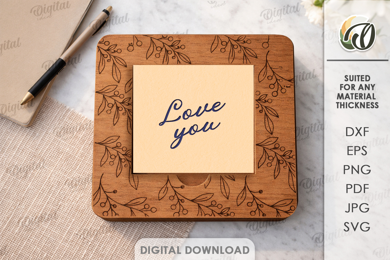 Floral Svg Notepad Laser Engraving 3d Laser Cut Note Pad Holder Post It Note Holder Sticky Note Holder Note Holder Gift Laser Organizer Laser