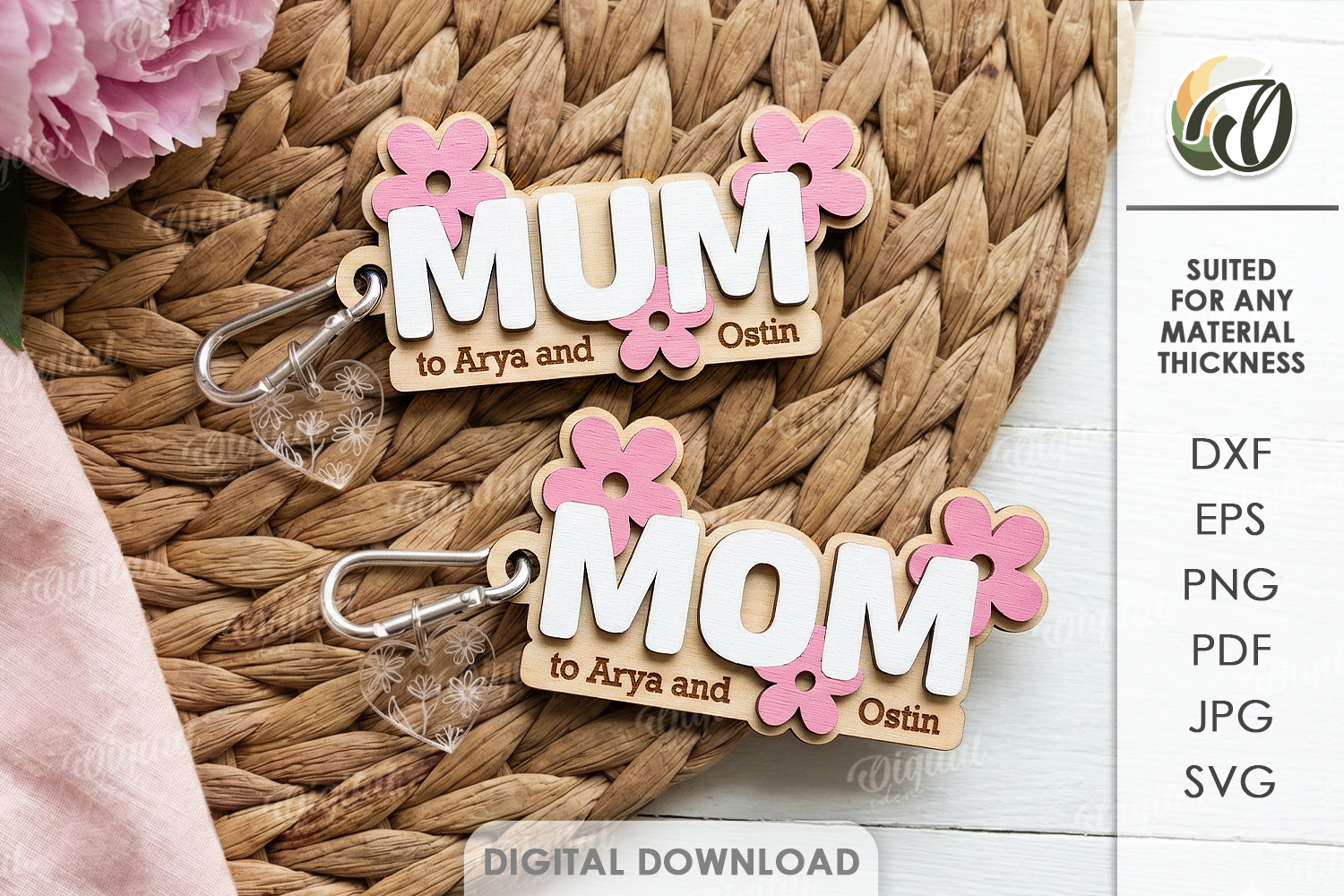 3D Mother's Day Keychain Laser Cut. Mother Keyring SVG