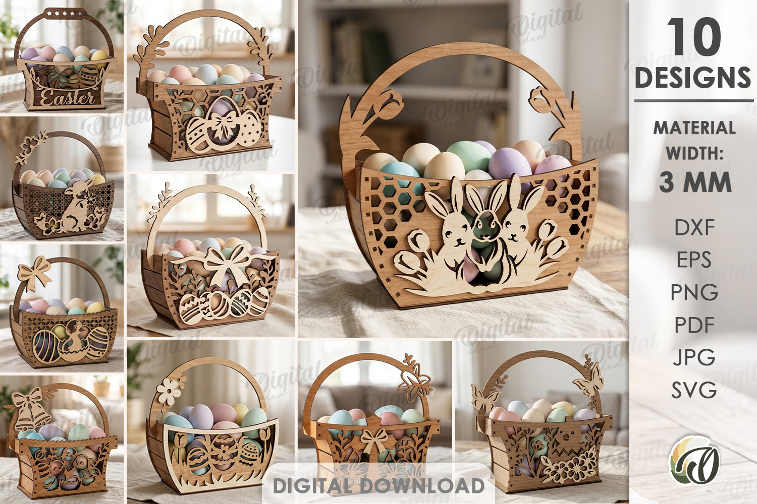 3D Easter Baskets Bundle Laser Cut. Easter Egg Holder SVG