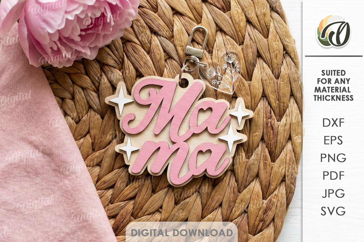 3D Mother's Day Keychain Laser Cut. Mother Keyring SVG