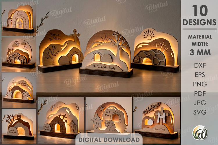 Religious Led Lamps Bundle Laser Cut. Night Lamp SVG