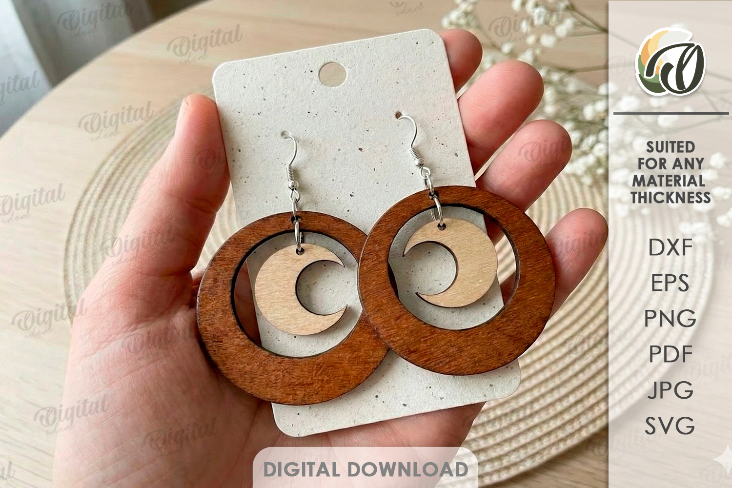 Boho Drop Earrings Laser Cut. Dangle Earrings SVG example image 1