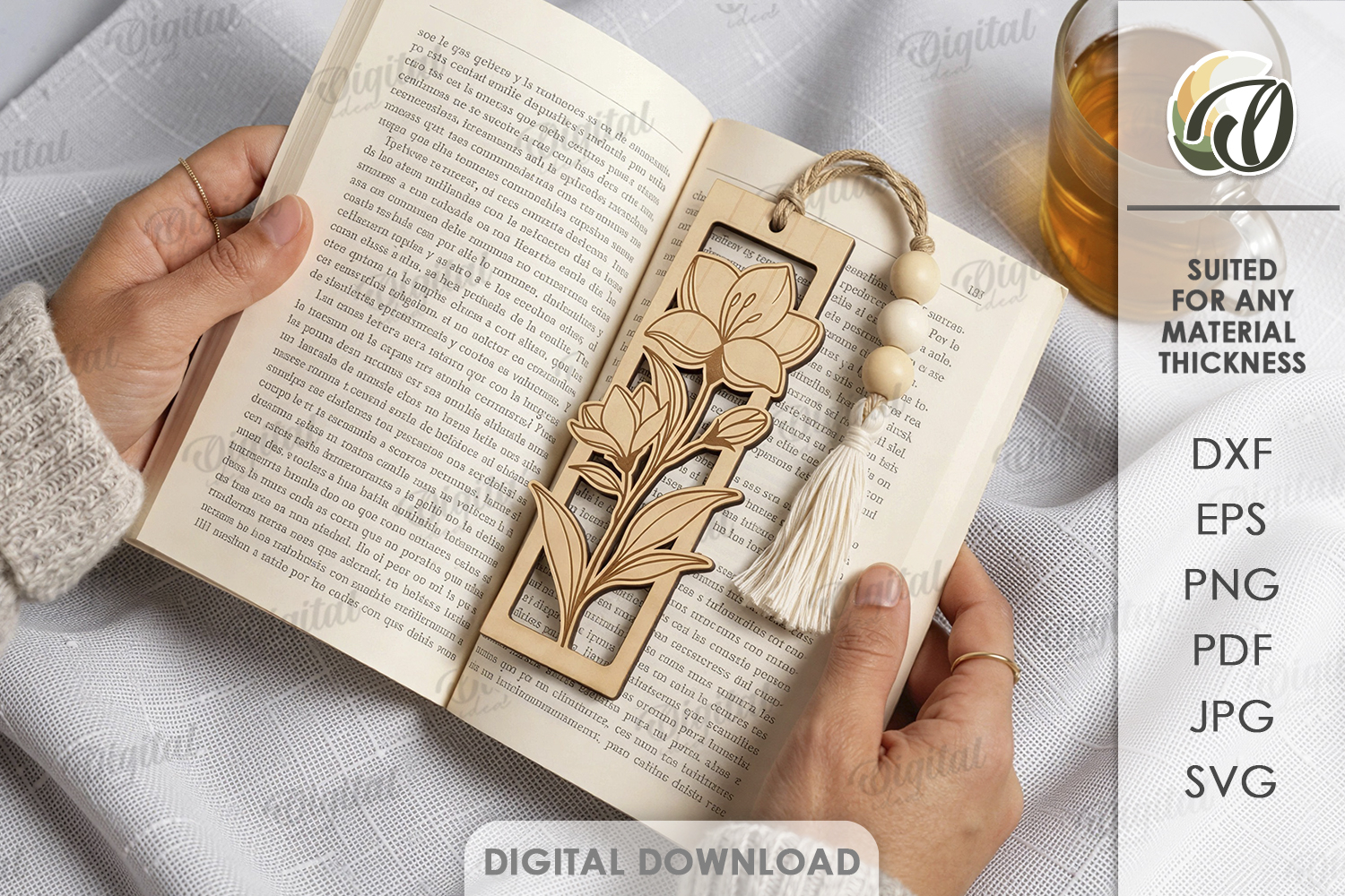 Floral Bookmark Laser Cut. Boho Engraved Bookmark SVG