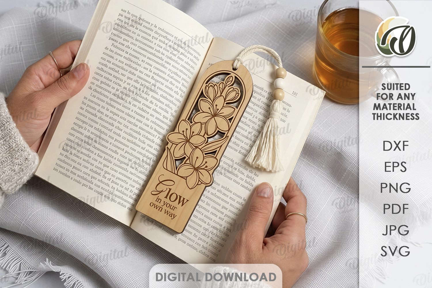 Floral Bookmark Laser Cut. Boho Engraved Bookmark SVG