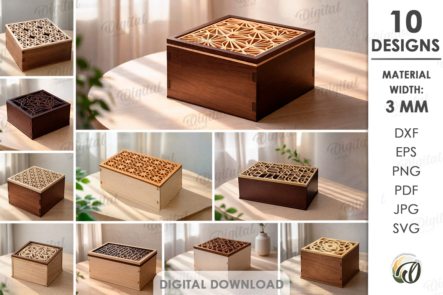 Your purchase will include zip folder with 10 designs in SVG, DXF, EPS, PDF, JPG and PNG file formats.