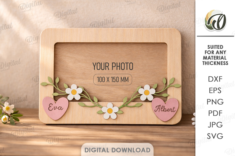 Flowers Personalized Home Decor Picture Frame Svg 3d Laser Cut Mothers Day Laser Photo Frame Laser Stand Laser Laser Standing Frame Laser