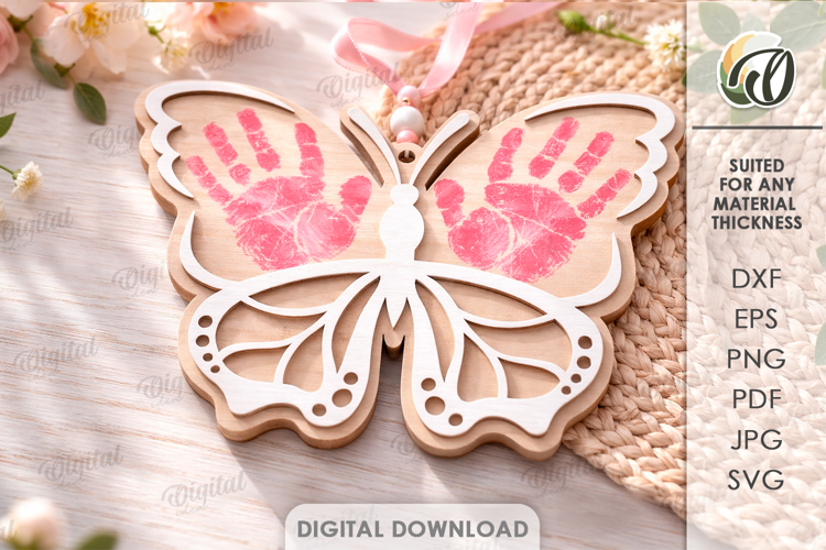 Hanging Mothers Day Svg Happy Mothers Day Gift Tag Svg Handprint Laser Ornament Butterfly Laser Cut 3d Laser Cut Mothers Day Laser Gift Laser
