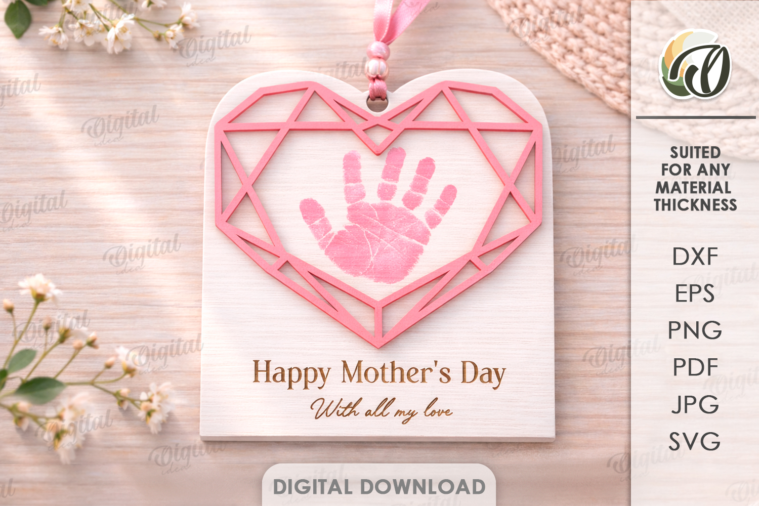 3D Mother's Day Gift Laser Cut. Handprint Ornament SVG example image 1