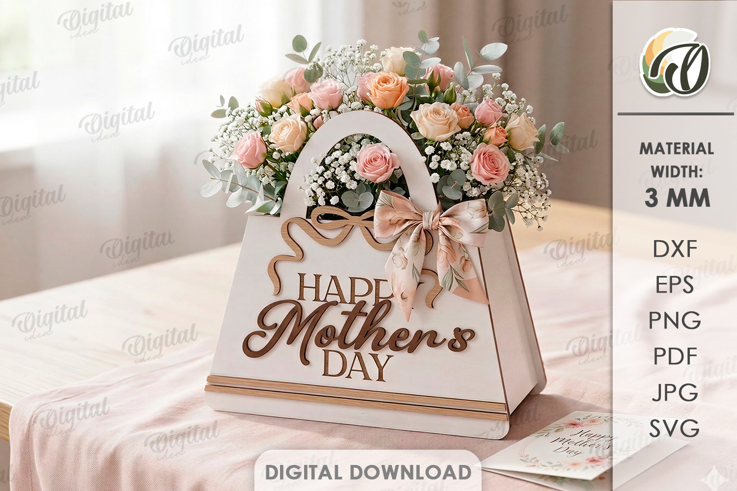 3D Mother's Day Bag Laser cut. Gift Bag SVG example image 1