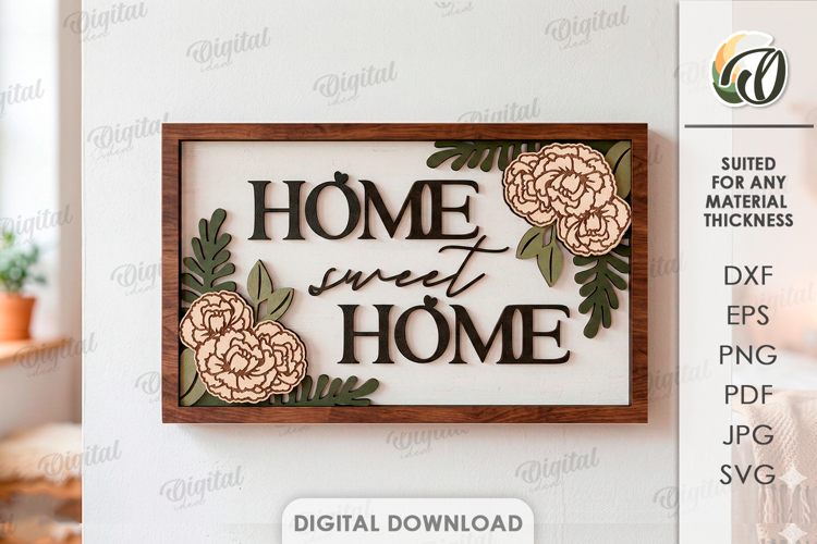 Flowers Home Svg Home Sweet Home Home Decor Wall Decor Home Quotes Home Sign 3d Laser Cut Laser Cut Wall Art Layered Laser