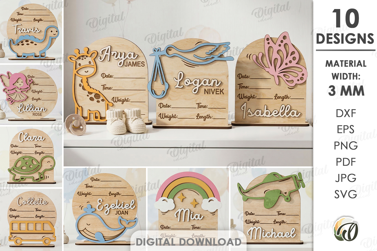 Personalized Baby Name Signs Bundle Lasercut.Birth Stats SVG