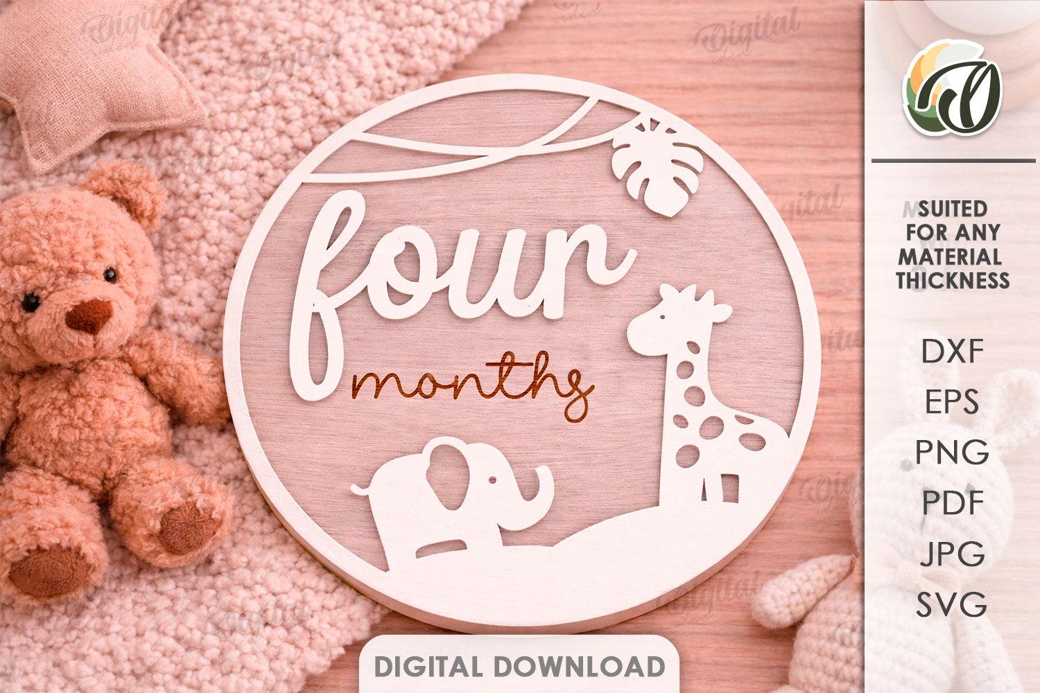 3D Monthly Milestone Disc Laser Cut. Four Months SVG example image 1