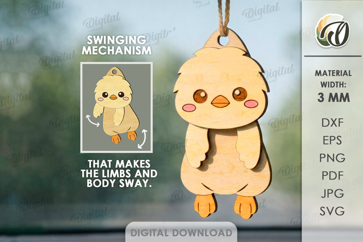 Kids Svg Hanging Cute Animals Chick Svg Cute Characters Toy Svg 3d Laser Cut Car Charm Laser Toys Layered Laser