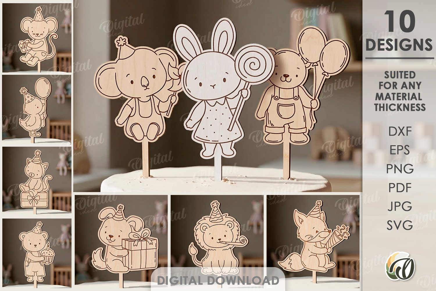 Kids Svg Cute Animals Party Decorations Happy Birthday Svg Birthday Decorations Birthday Cake Topper Cake Topper Svg Cupcake Topper Birthday Laser Cake Topper Laser