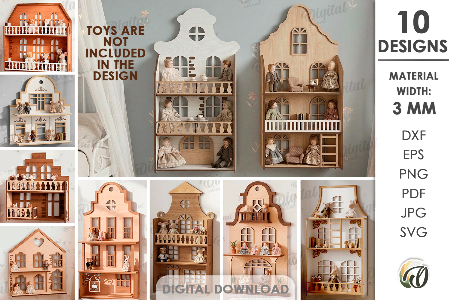 Amsterdam Dollhouse Shelves Bundle Laser Cut. Nursery SVG