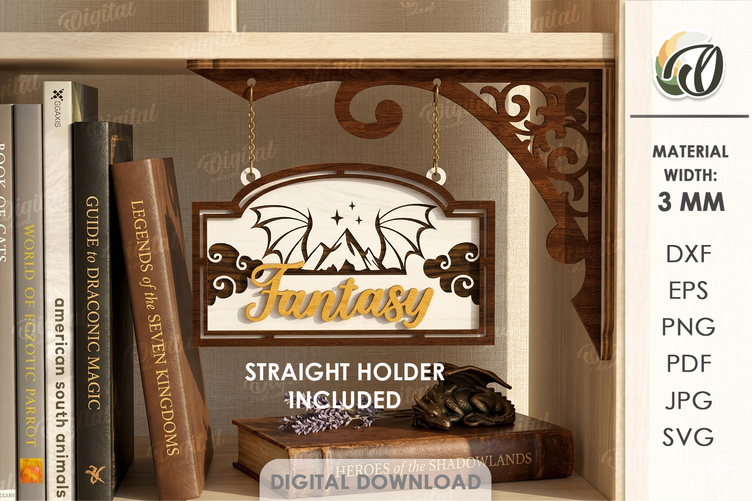 Similar Design Products to 3D Hanging Bookshelf Sign Laser Cut. Fantasy SVG