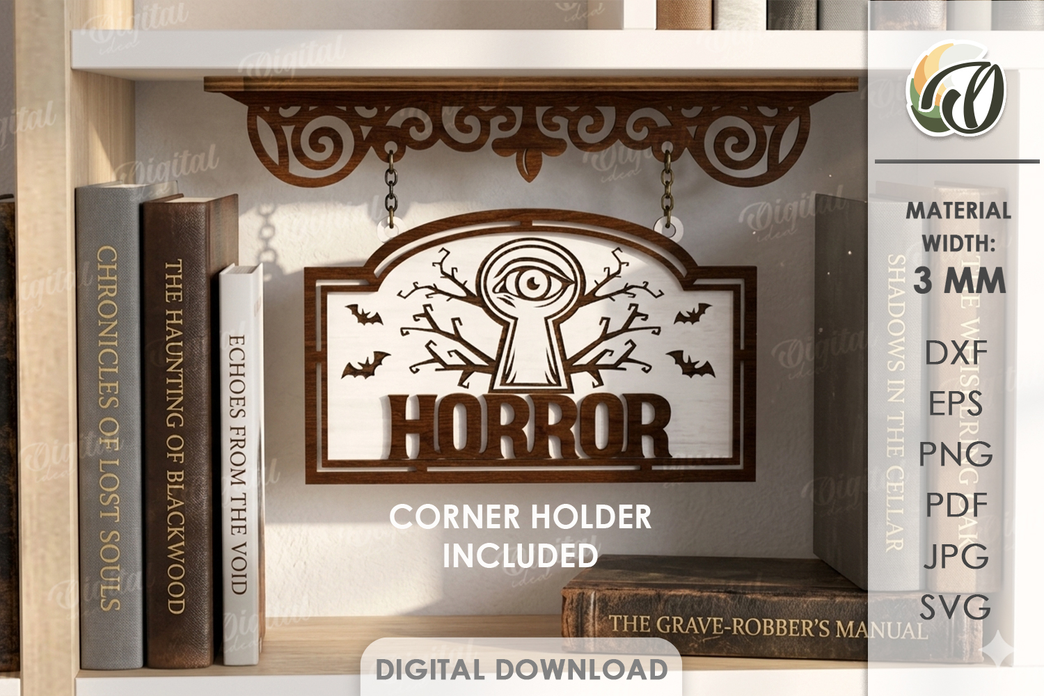 3D Hanging Bookshelf Sign Laser Cut. Horror SVG
