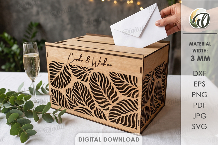 Gift Box Personalized Wooden Box Money Box Plant Svg Wedding Card Box Card Box 3d Laser Cut Wedding Laser Card Box Laser Cut