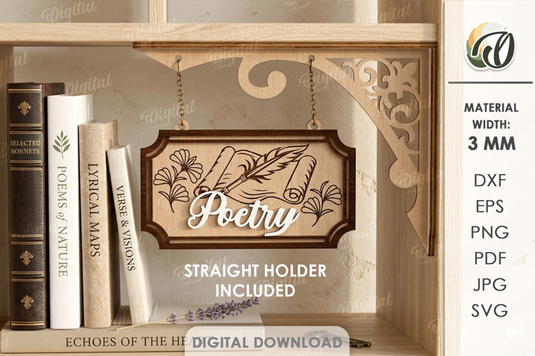 Similar Design Products to 3D Hanging Bookshelf Sign Laser Cut. Poetry SVG