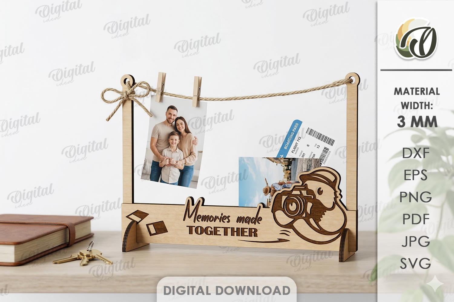 3D Photo Holder Frame Laser Cut. String Display Stand SVG example image 1