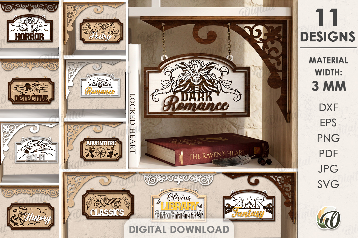 Hanging Bookshelf Signs Bundle Lasercut. Bookshelf Decor SVG