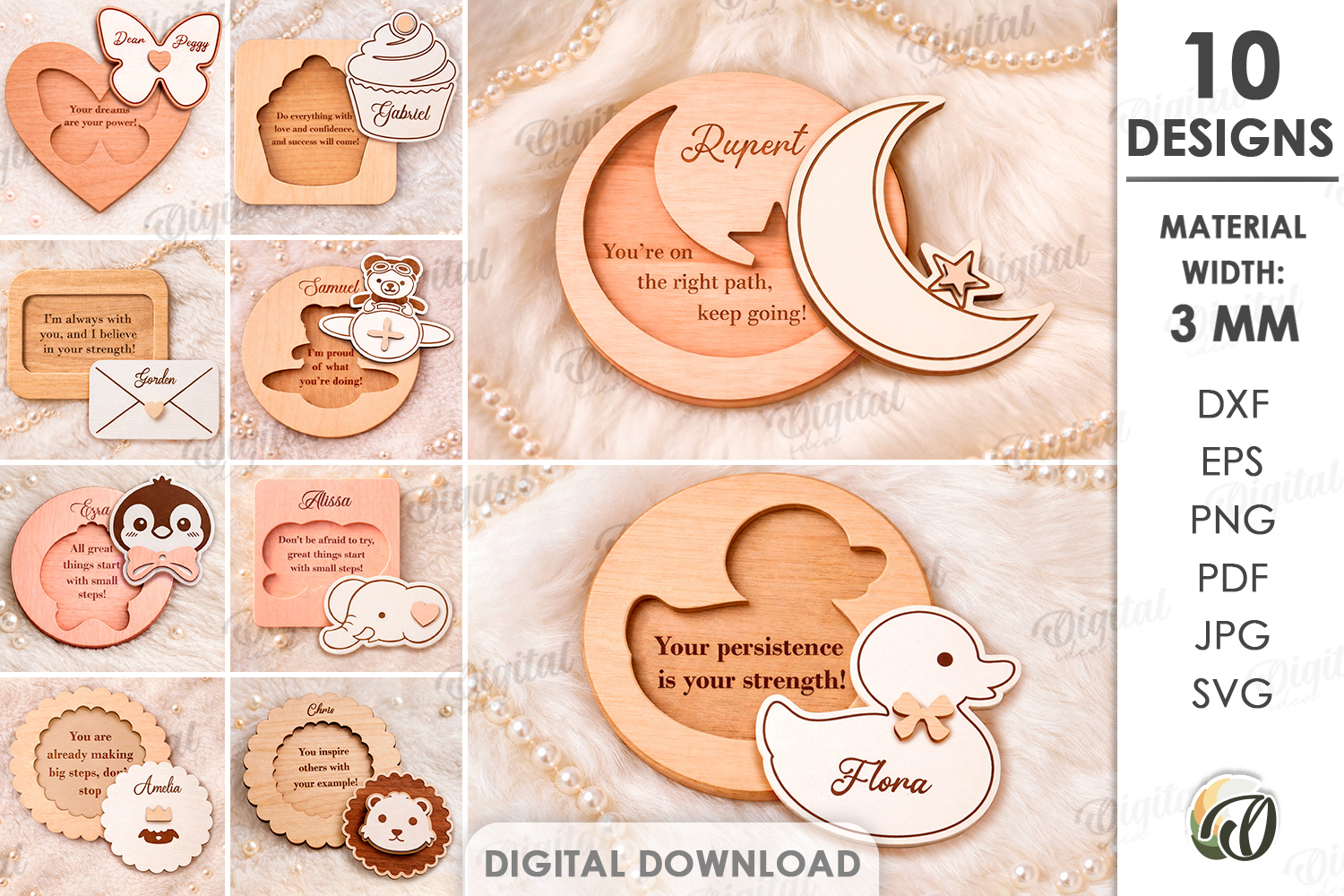 Kids Cards Bundle Laser Cut. Personalized Gift Card SVG