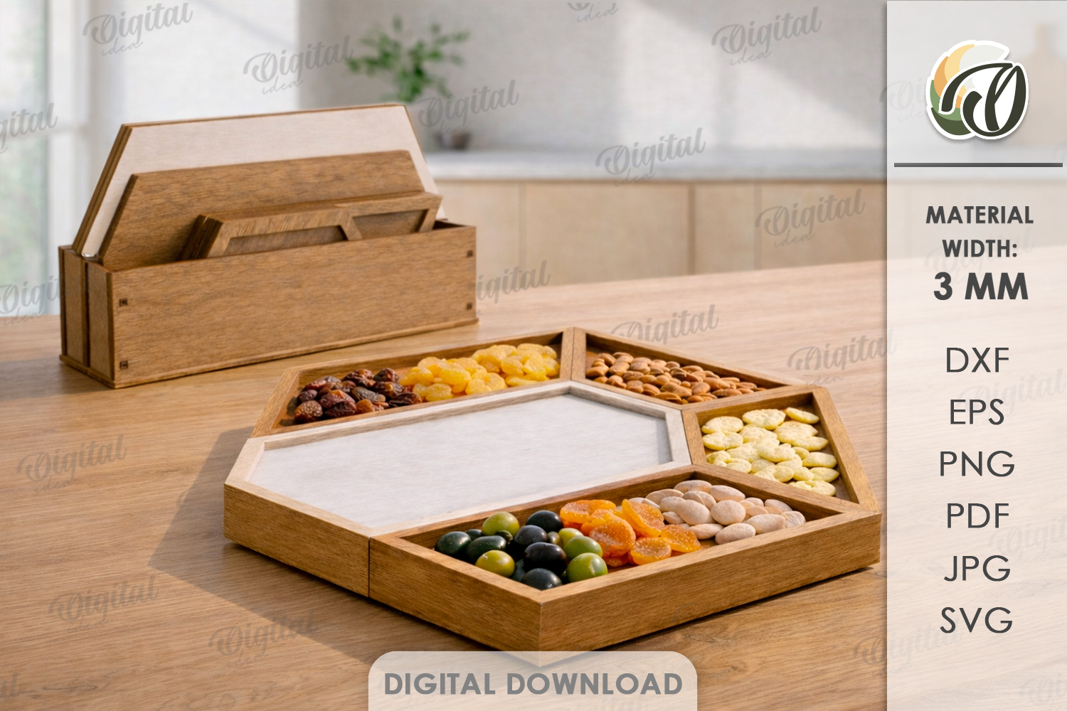 3D Stack Serving Tray Laser Cut. Snack Serving Tray SVG example image 1