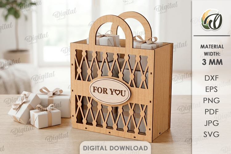 Similar Design Products to 3D Gift Bag Laser Cut. Gift Holder. Present Bag SVG