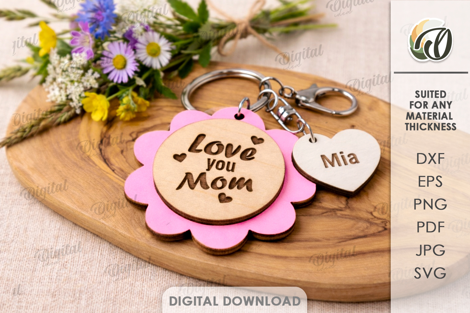 Mother's Day Keychain Lasercut. Mom Gift. Mother Keyring SVG
