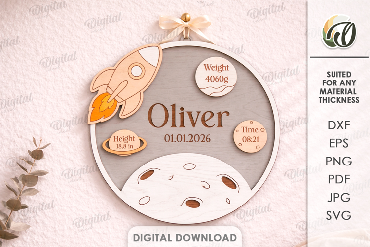 Personalized Newborn Birth Announcement Rocket Svg Wall Decor Nursery Decor Baby Sign Baby Birth Stats Svg 3d Laser Cut Baby Laser
