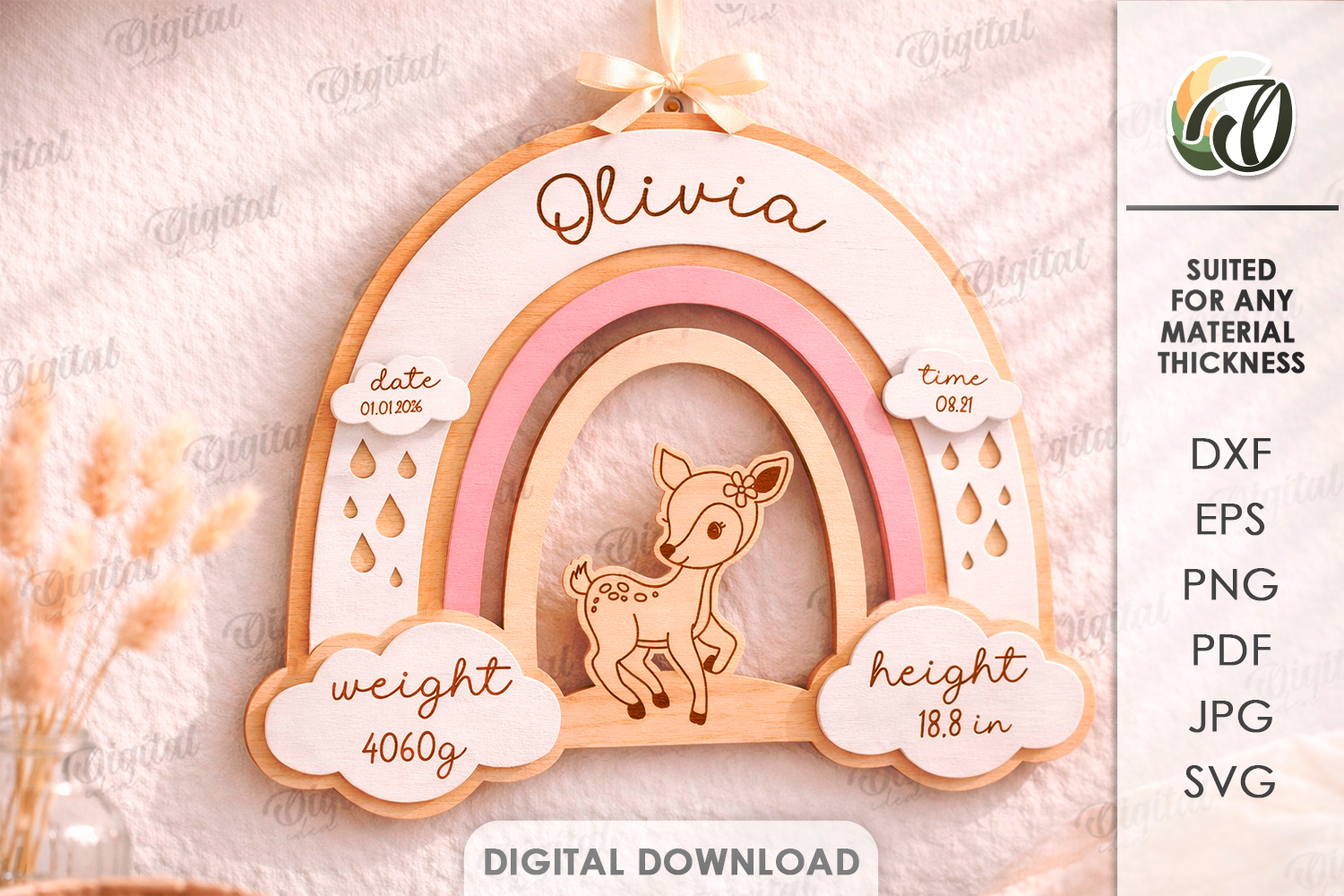 Personalized Newborn Fawn Birth Announcement Wall Decor Nursery Decor Baby Sign Baby Birth Stats Svg 3d Laser Cut Baby Laser