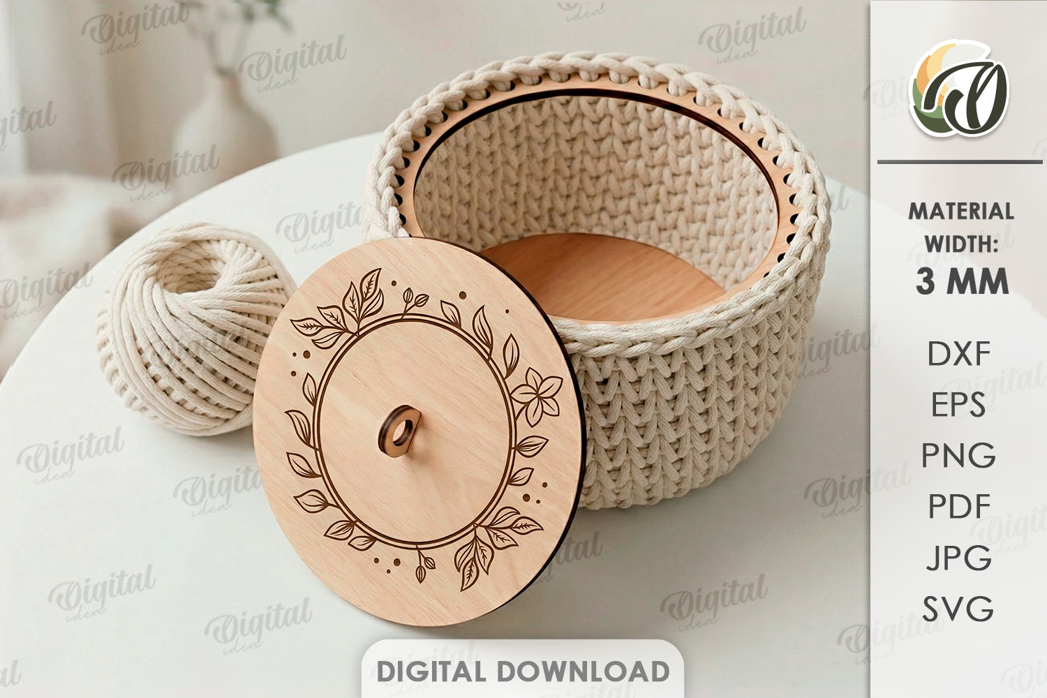 Similar Design Products to Crochet Basket Base Laser Cut. Crochet Basket Lid Base SVG