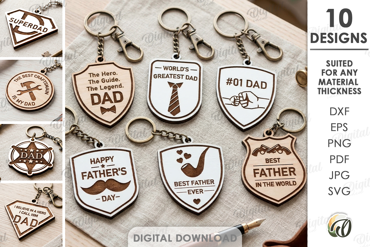 Similar Design Products to Father's Day quote Keychains Bundle Laser Cut. Keyring SVG