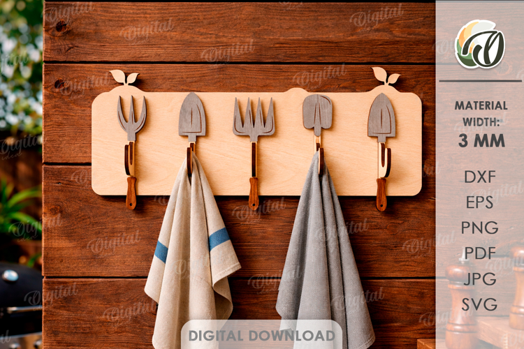 3D Towel Rack Laser Cut. Summer towel hanger SVG. Garden