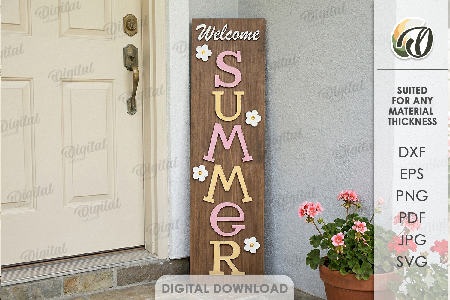 Floral Svg Porch Sign Svg Welcome Sign Svg Door Sign Vertical Sign Summer Sign 3d Laser Cut Summer Vertical Sign Laser Cut Summer Layered Laser
