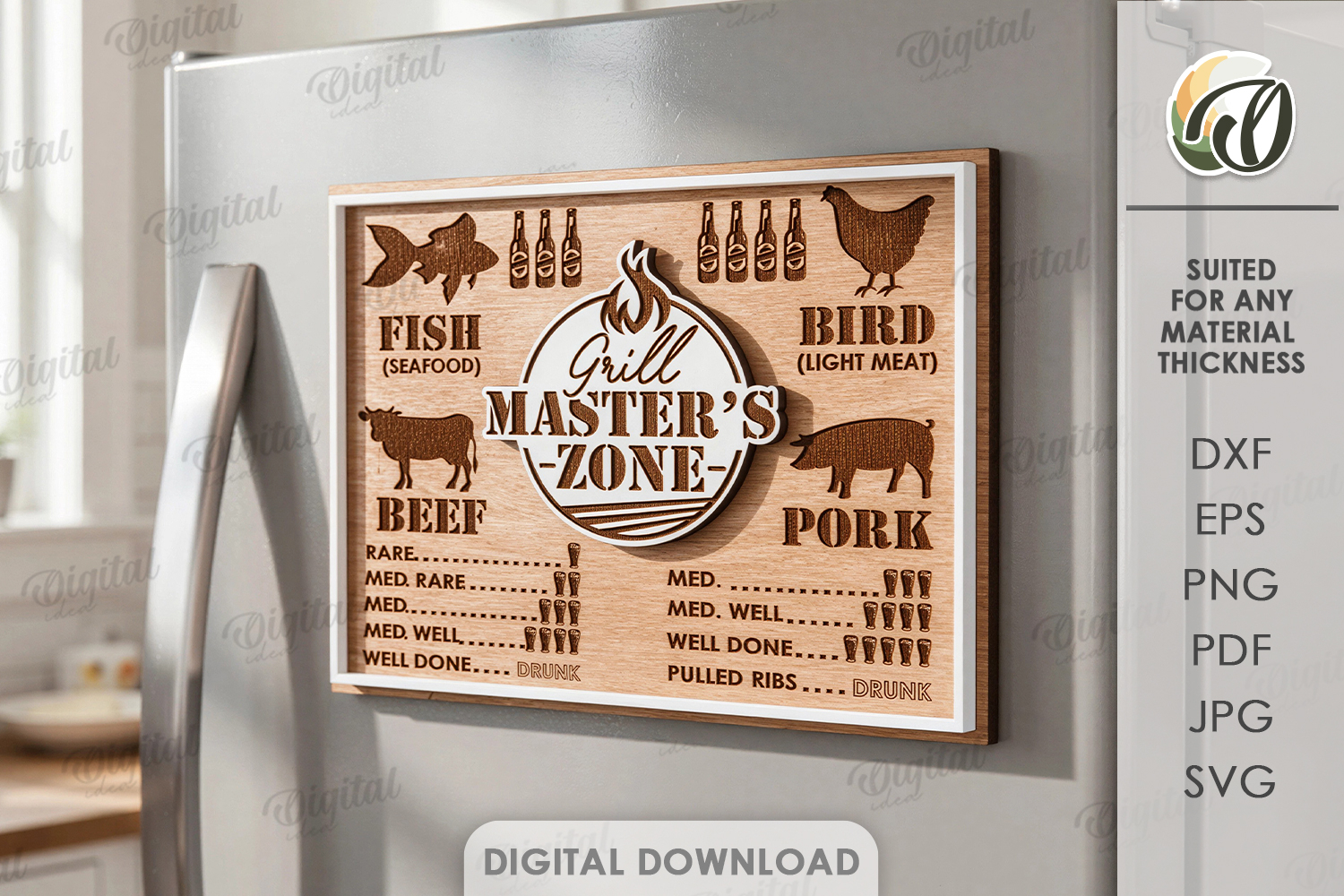 3D BBQ timer magnet Laser Cut. Grill master's zone SVG