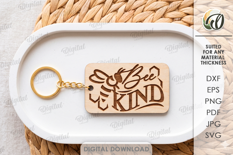 Floral Svg Bee Svg Honey Bee Laser Engraving Glowforge Files Bee Kind Svg Bee Design Laser Keychain Keyring Svg Gift Laser
