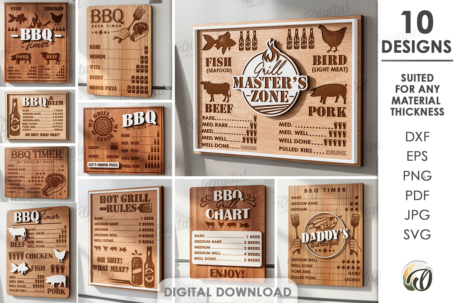 3D BBQ timer magnets Bundle Laser Cut. Kitchen SVG
