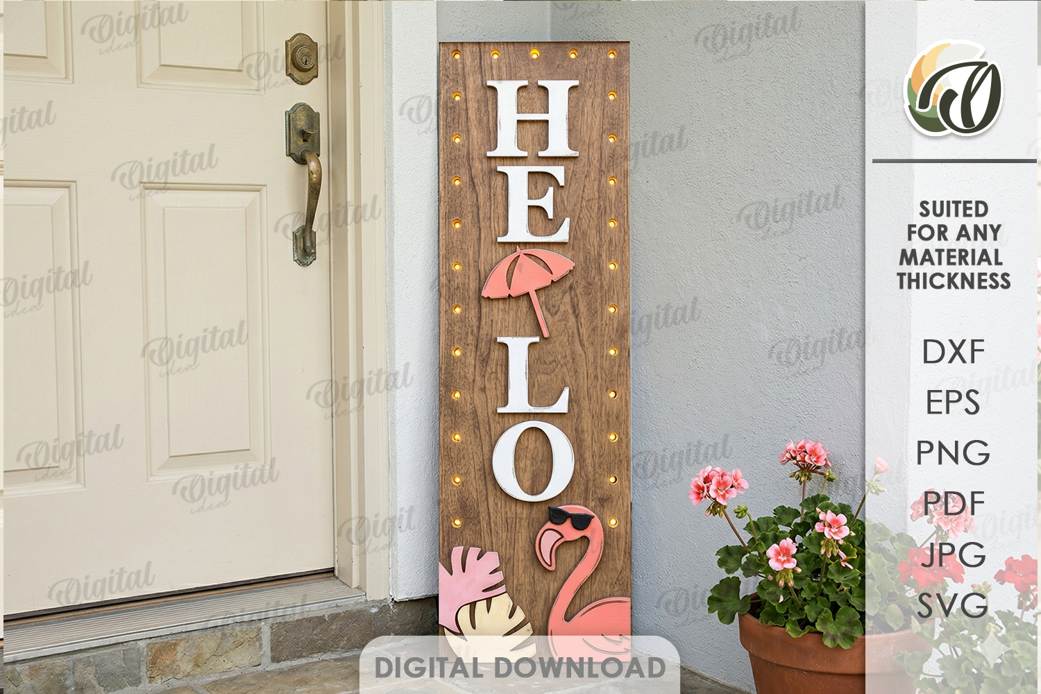 3D Summer Vertical Door Sign Laser Cut. Hello SVG